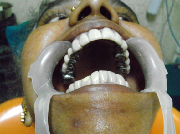 One of my beloved patient, had a condition "Amelogenesis Imperfecta" Where the teeth are not formed well and enamel keeps shedding as it is not formed well. So the teeth get caries easily, so the treatment plan was to do Full Mouth rehabilitation with Vitalium bridges with Acrylic faceing. The procedure was done more than seven years before and the patient has been followed regularly. she is doing fine.