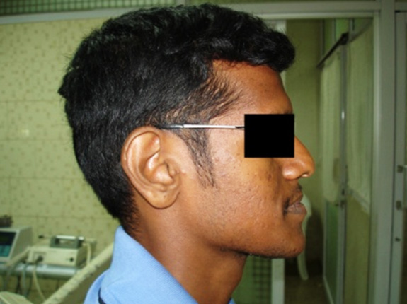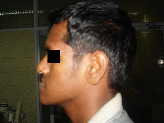 A young man with malformed jaw corrected with orthognathic surgery.